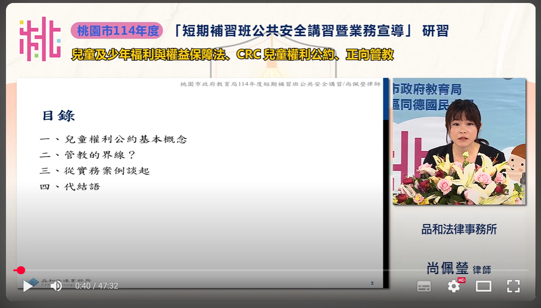 專業控管法律風險 – Experienced – 貼近客戶需求 – Customized – 精品化服務 – Delicated – 品和專欄 Column 【遺囑怎麼寫才有效?常見誤區一次看懂】 -林佳頻律師 【遺囑怎麼寫才有效?常見誤區一次看懂】 -林佳頻律師 黃先生今年65歲,退休前是小學老師,一輩子勤儉持家。他有兩個孩子,大兒子在國外多年沒聯絡,小女兒則一直陪在他身邊照顧生活。... Read More 【裝修工程爭議解析:追加工程費用該不該給?】-陳塘偉律師 【裝修工程爭議解析:追加工程費用該不該給?】 -陳塘偉律師 追加工程費... Read More 【淺談子女撫養費】-林佳頻律師 【淺談子女撫養費】 -林佳頻律師 前言... Read More 【裝修完工 ≠ 完美無缺?法院見解:業主仍應支付尾款!】-陳塘偉律師 【裝修完工 ≠ 完美無缺?法院見解:業主仍應支付尾款!】 陳塘偉律師 裝修完工... Read More 【淺談雇主就職場性騷擾的防治義務】林佳頻律師 【淺談雇主就職場性騷擾的防治義務】 林佳頻律師 前言... Read More 最新消息 News 【桃園市政府教育局-114年度短期補習班公共安全講習暨業務宣導】-尚佩瑩律師 尚律師很榮幸受邀擔任本次講座,與短期補習班、兒童課後照顧服務中心業者分享「兒童權利公約與教學現場的應用」議題。•... Read More 【大園國際高中「兒童權利公約與教學現場的應用」之講座】 -尚佩瑩律師 尚律師很榮幸受邀擔任本次講座,與教師分享「兒童權利公約與教學現場的應用」議題。... Read More 【經濟部中小企業及新創署短影音-商品誠實標示的重要性】-尚佩瑩律師 ... Read More 【律師職前訓練講座-契約審閱與撰擬】-尚佩瑩律師 本所尚佩瑩律師榮幸受邀擔任律師職前訓練課程中「契約審閱與撰擬」課程講師。... Read More 桃園市政府教育局「生對生霸凌事件調和及調查知能」研習-尚佩瑩律師 本所尚佩瑩律師很榮幸於本年度再次擔任桃園市政府教育局「生對生霸凌事件調和及調查知能研習」分組講師。在校園霸凌調和程序實施後,尚律師已多次擔任調和委員並協助成立調和,透過調和程序協助修復當事人關係、減少創傷,避免校園霸凌事件再度發生。... Read More 品和法律事務所 info@clc-law.com.tw 品和台北總所 電話:+886 2-2100-2608 / 傳真:+886 2-2100-2618 104084 台北市中山區南京東路二段50號7樓之1 7F.-1, No. 50, Sec. 2, Nanjing E. Rd., Zhongshan Dist., Taipei City 104084 品和桃園分所 電話:+886 3-2713-071 330004 桃園市桃園區三民路三段284號11樓 11F., No.284, Sec. 3, Sanmin Rd., Taoyuan Dist., Taoyuan City 330004